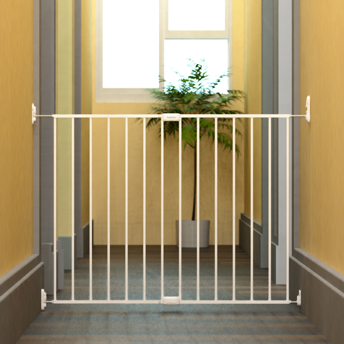 Adjustable Baby Safety Swing Gate, Hardware-Mounted Metal Gate for Stairs and Doorways, Secure Latch for Kids and Pets (Black,White 24"-40.5" W x 28.75" H)